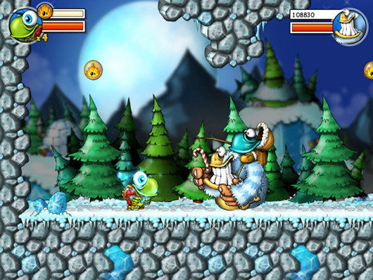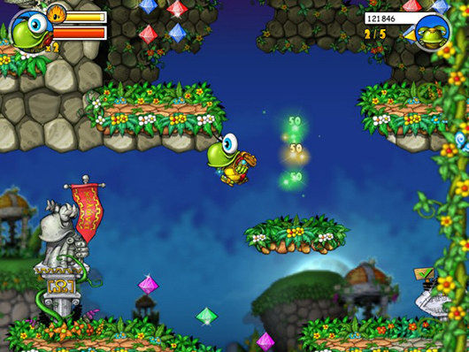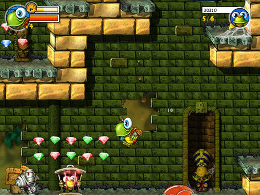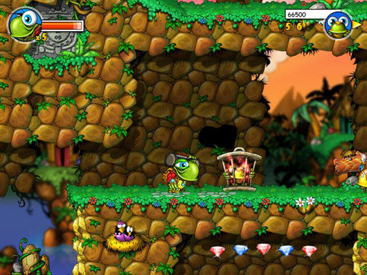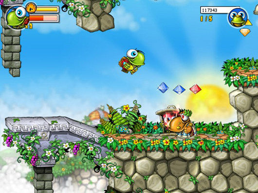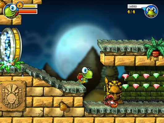 В этой увлекательной и смешной компьютерной аркаде вам предстоит отправиться в далекое путешествие и освободить из плена забавных черепашек. Впереди 5 игровых миров и множество сражений с коварными и опасными противниками. Эта игра обязательно понравится всем любителям классических платформенных аркад: 3 уровня сложности позволяют выбрать подходящий режим как начинающему игроку, так и профессиональному истребителю монстров.
